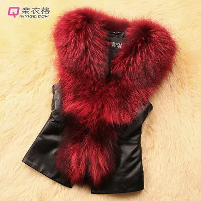 Women Leather Jacket Fur Collar Stitching Simulation Leather Oversized Raccoon Autumn Winter Solid Color Sleeveless Vest Coat